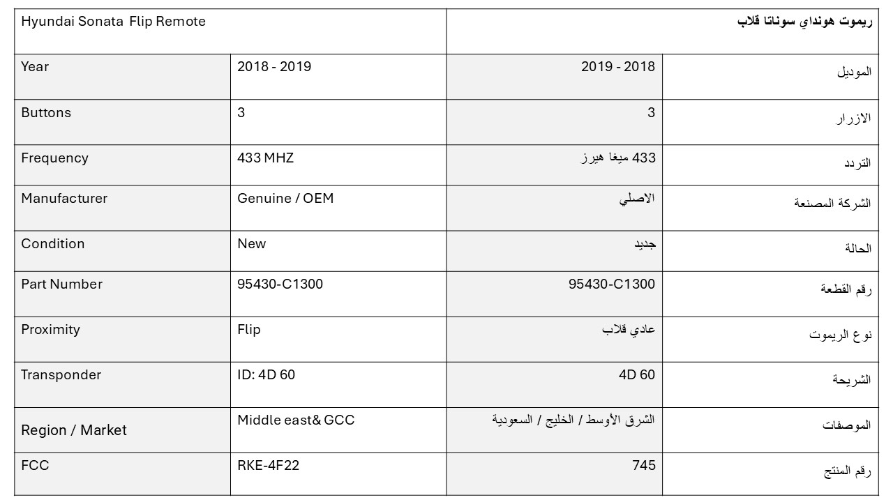 ريموت هونداي سوناتا قلاب 2018 - 2019 الاصلي 95430C1300