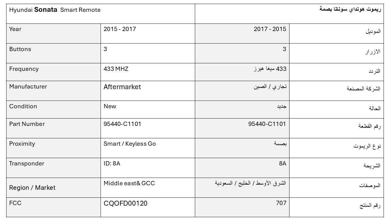 Hyundai Sonata 2015-2017 Smart Remote Key 3 Buttons 433MHz 95440-C1101