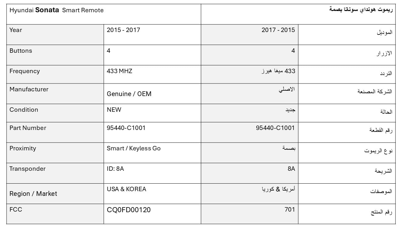 ريموت هونداي سوناتا بصمة 2024 -2025 الاصلي 95440L1810